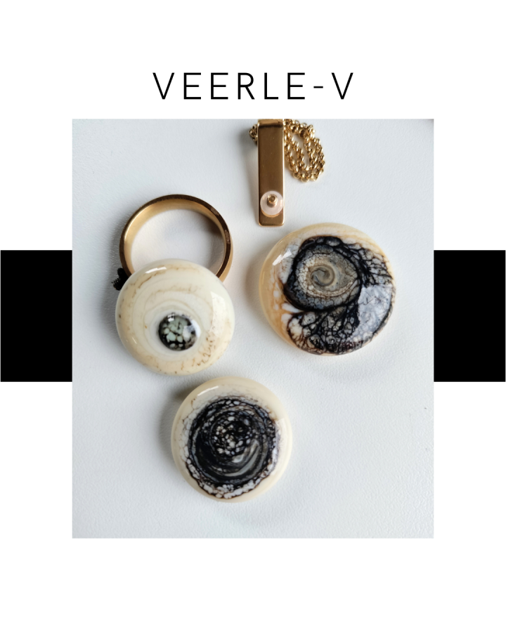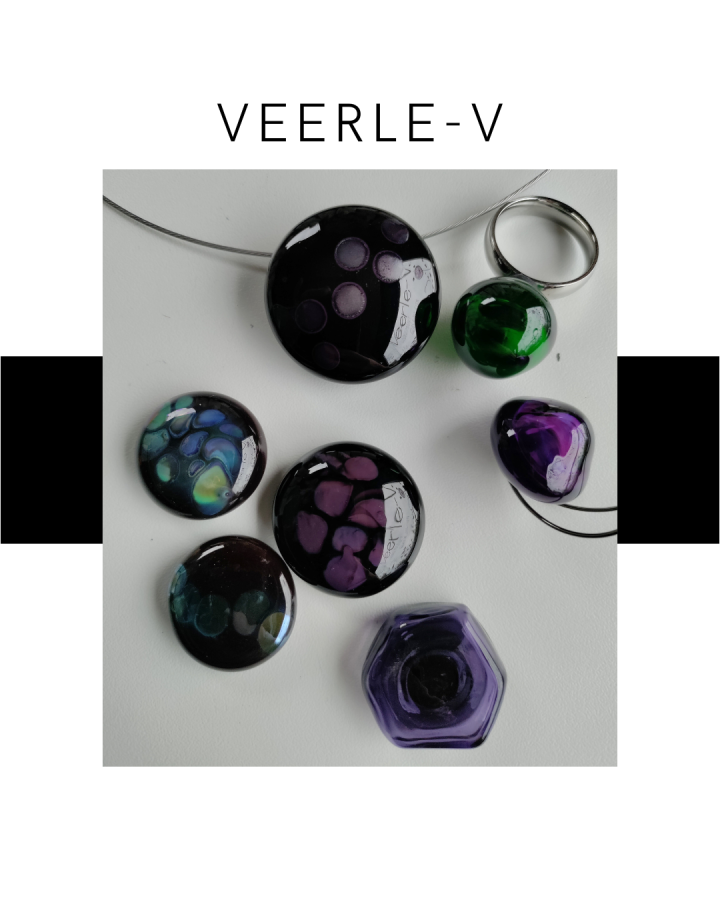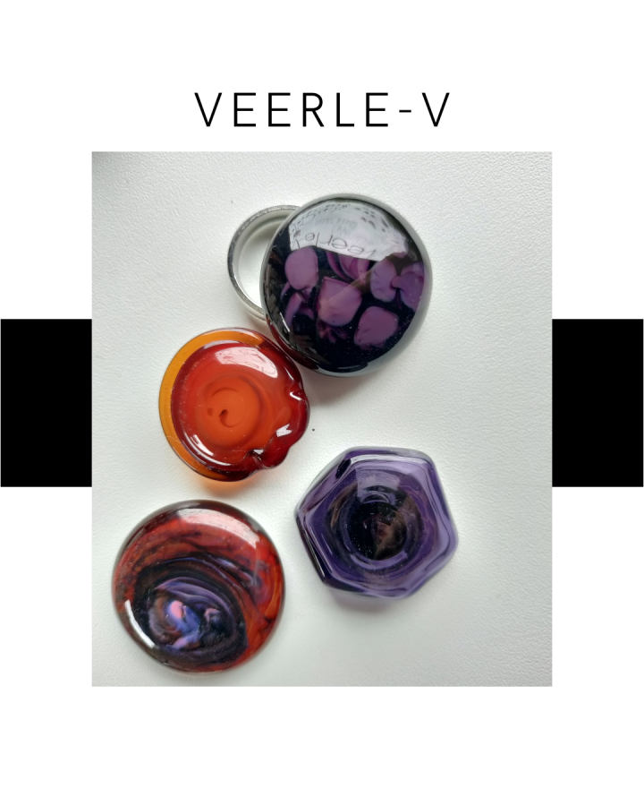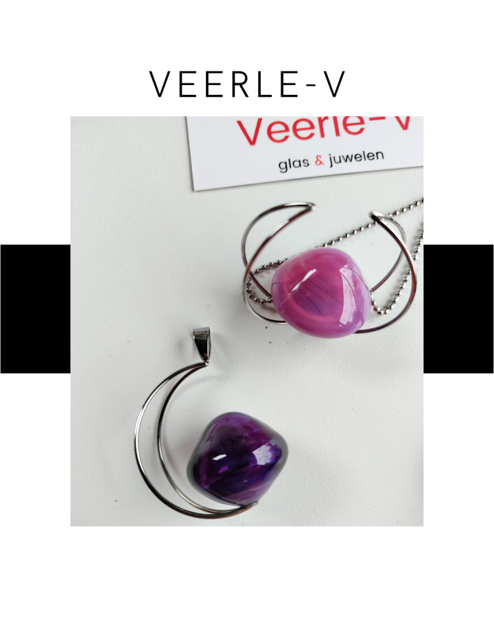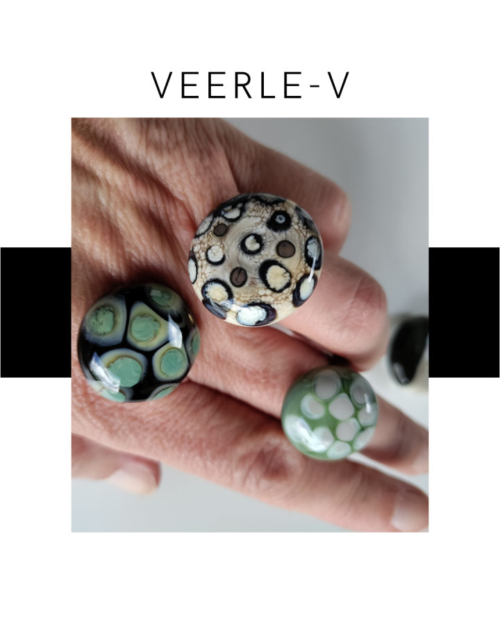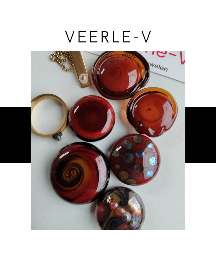 De Veerle-V glas juwelen zijn zo ontworpen dat ze onderling gewisseld kunnen worden, vandaag draag jij de glazen tops op de ring , morgen aan de ketting.