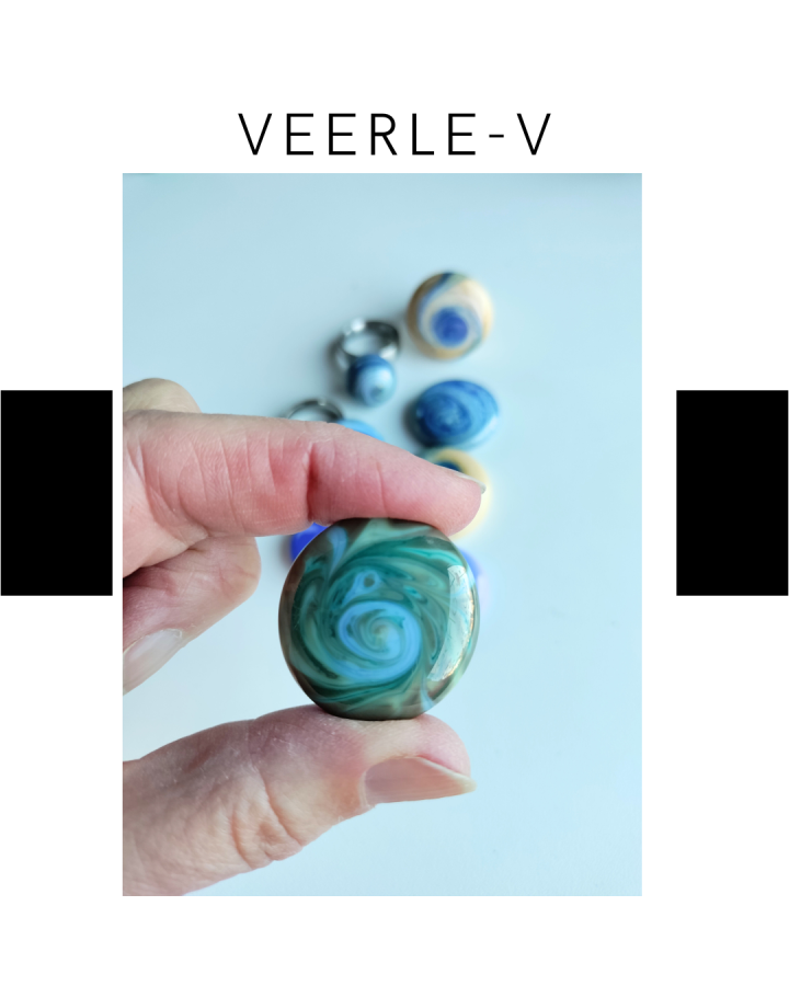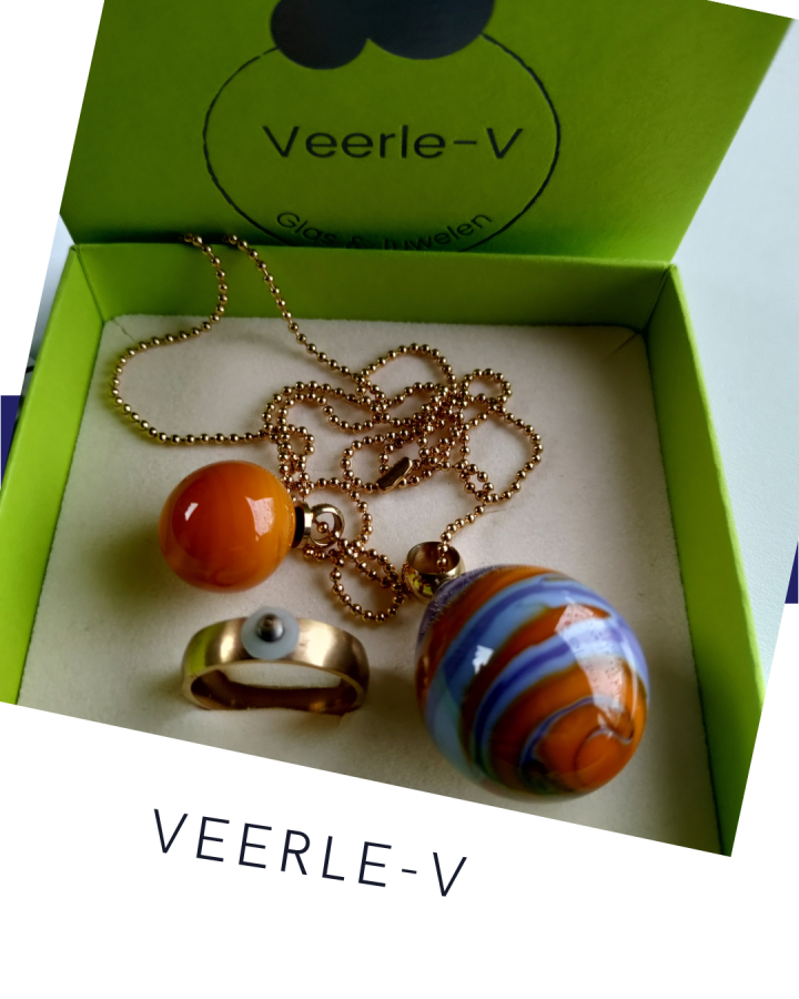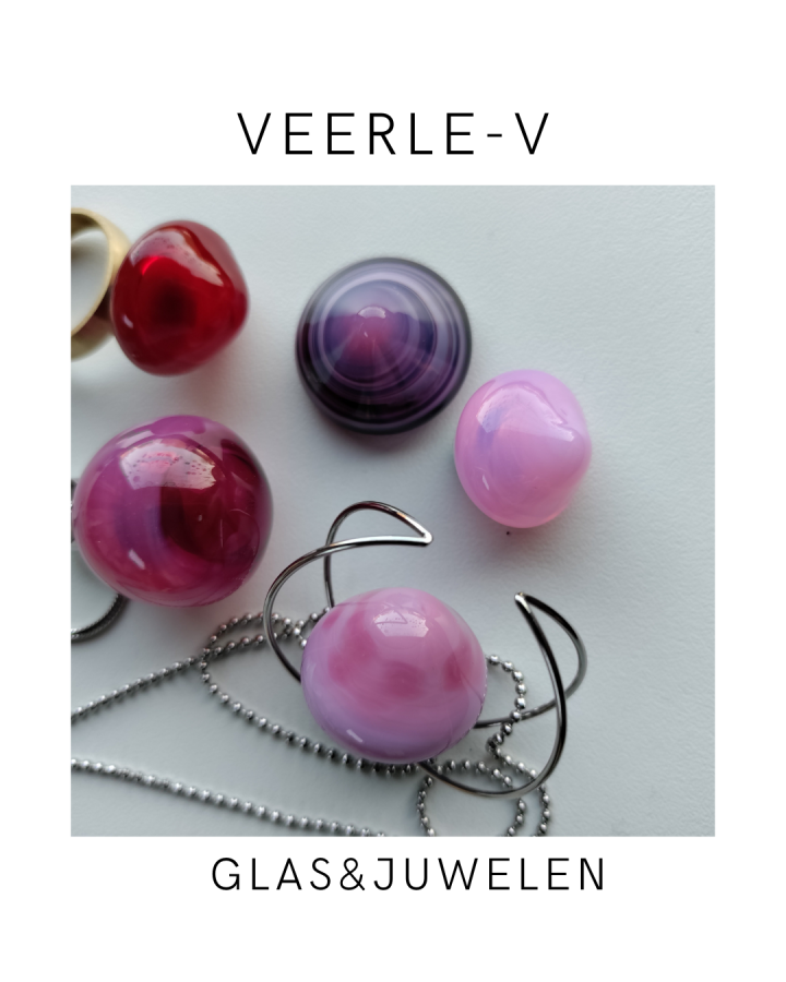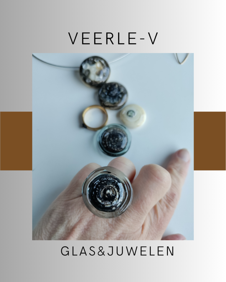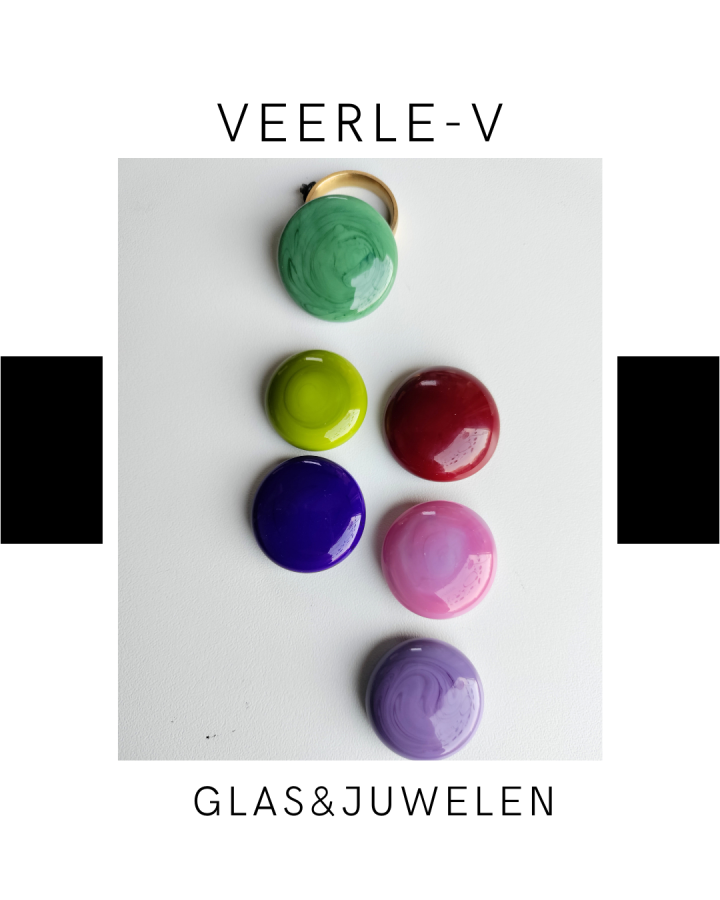 De Veerle-V glas juwelen zijn zo ontworpen dat ze onderling gewisseld kunnen worden, vandaag draag jij de glazen tops op de ring , en morgen aan de ketting.