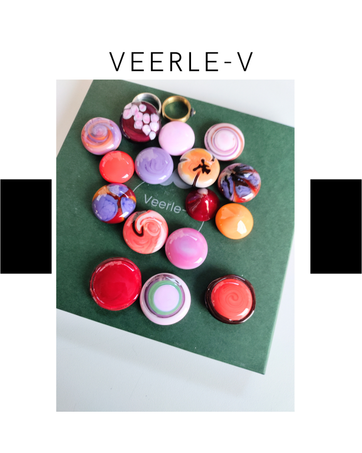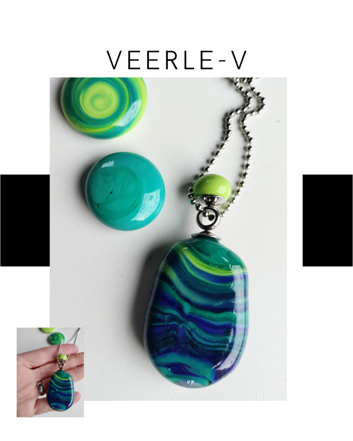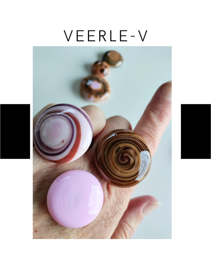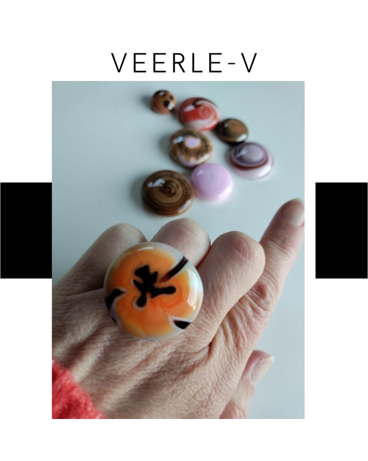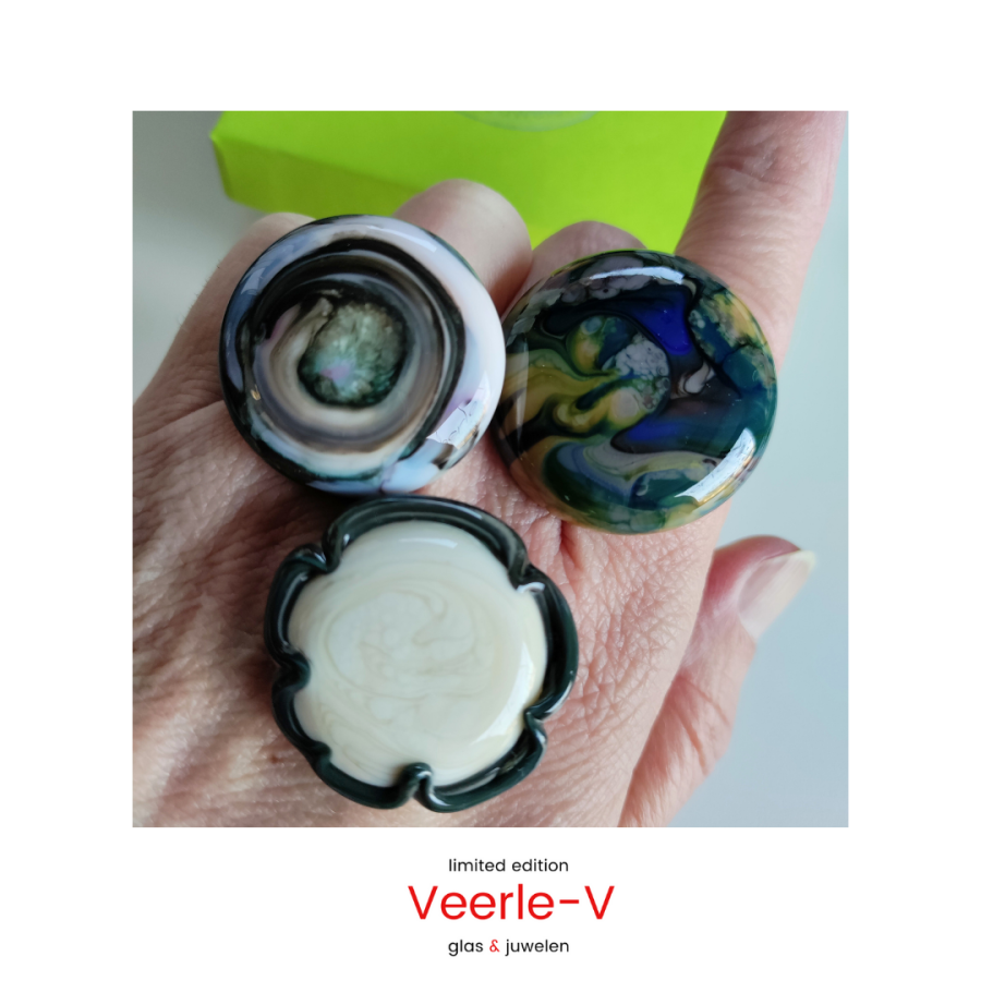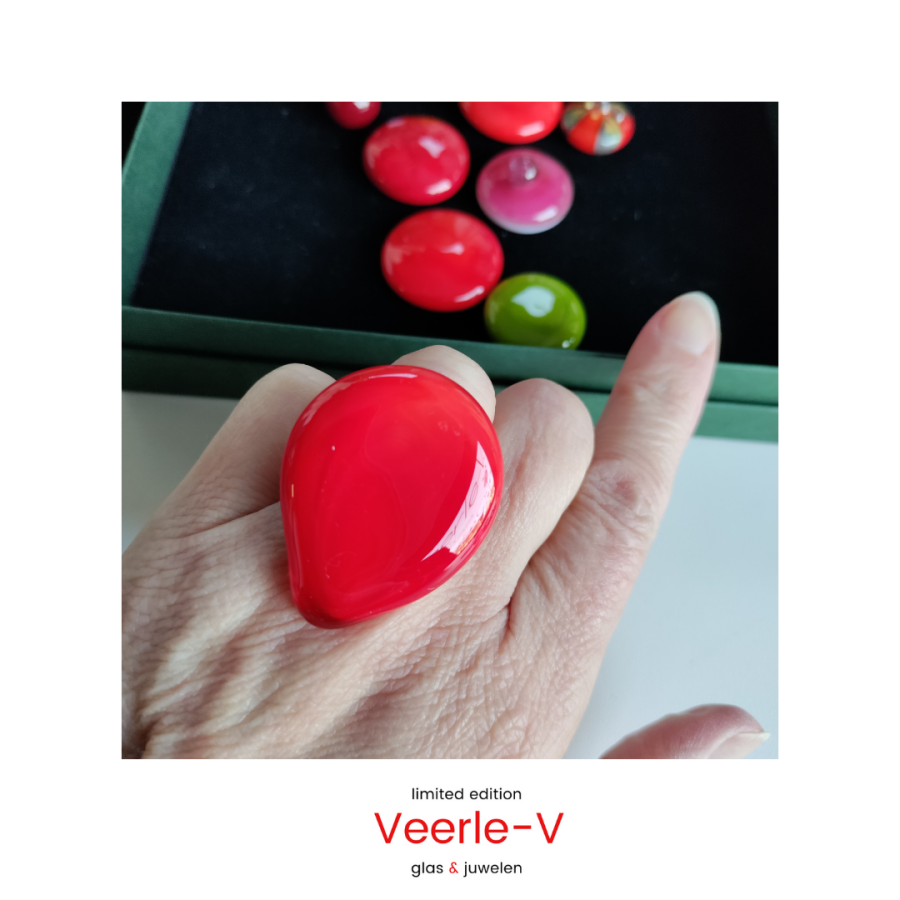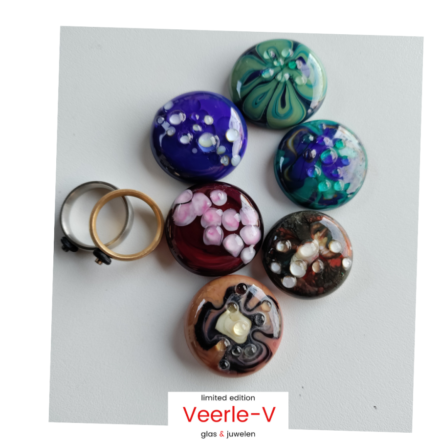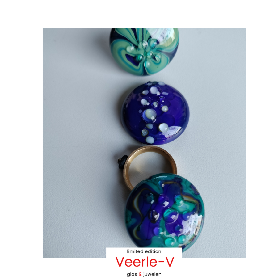 De Veerle-V glas juwelen zijn zo ontworpen dat ze onderling gewisseld kunnen worden, vandaag draag jij de glazen tops op de ring , en morgen aan de ketting.