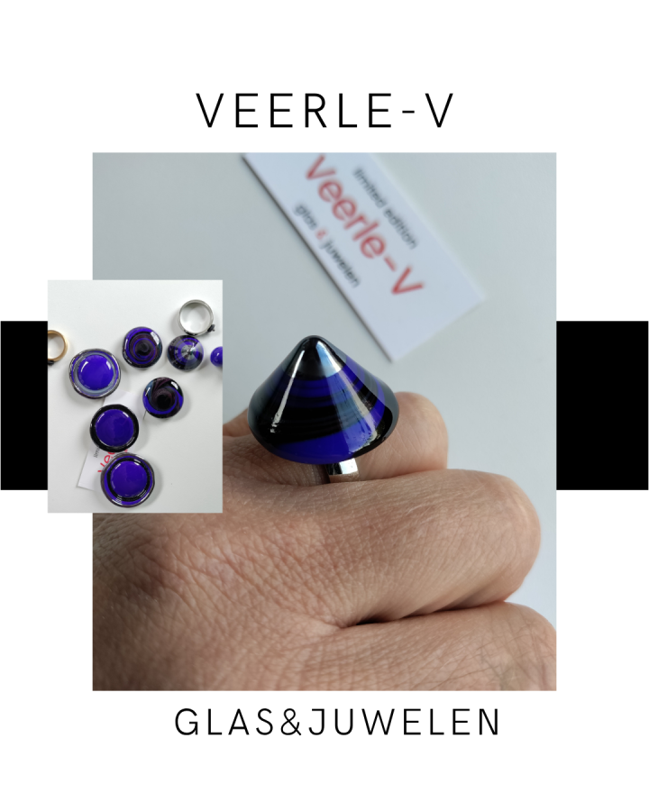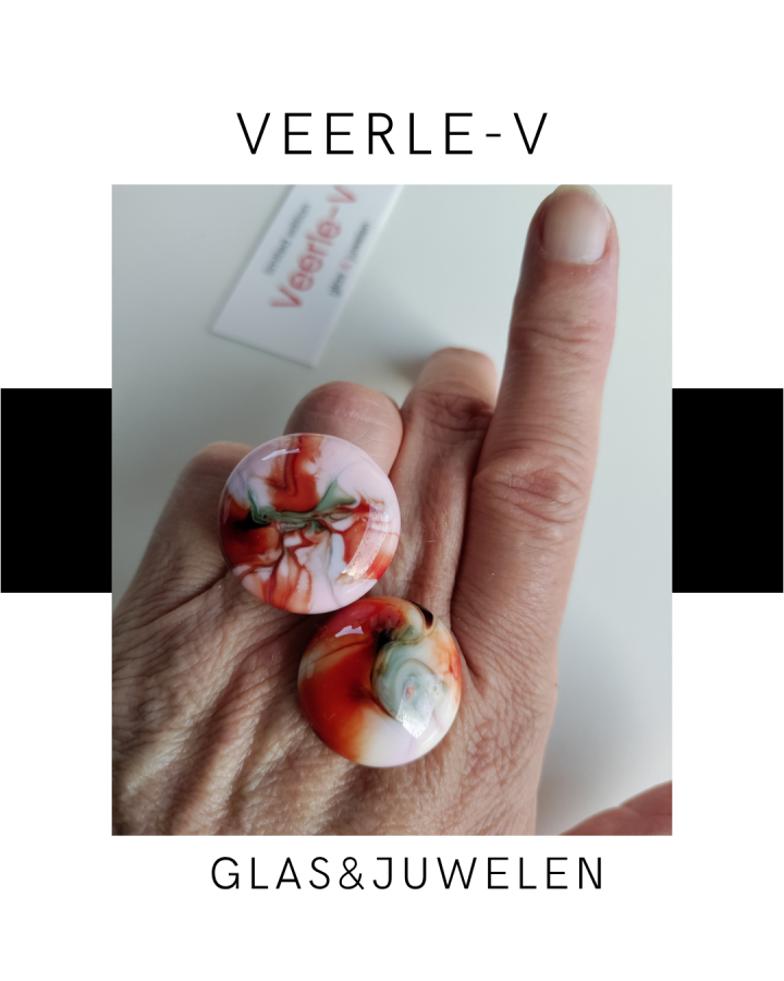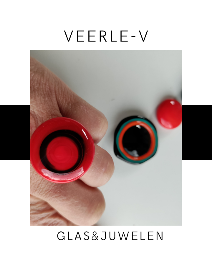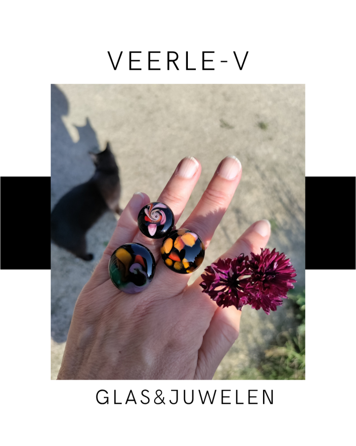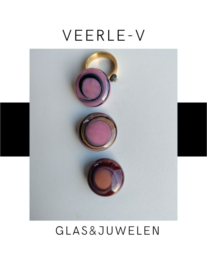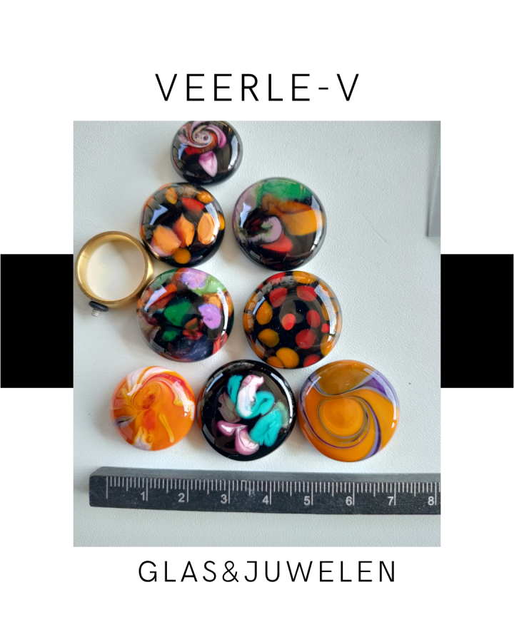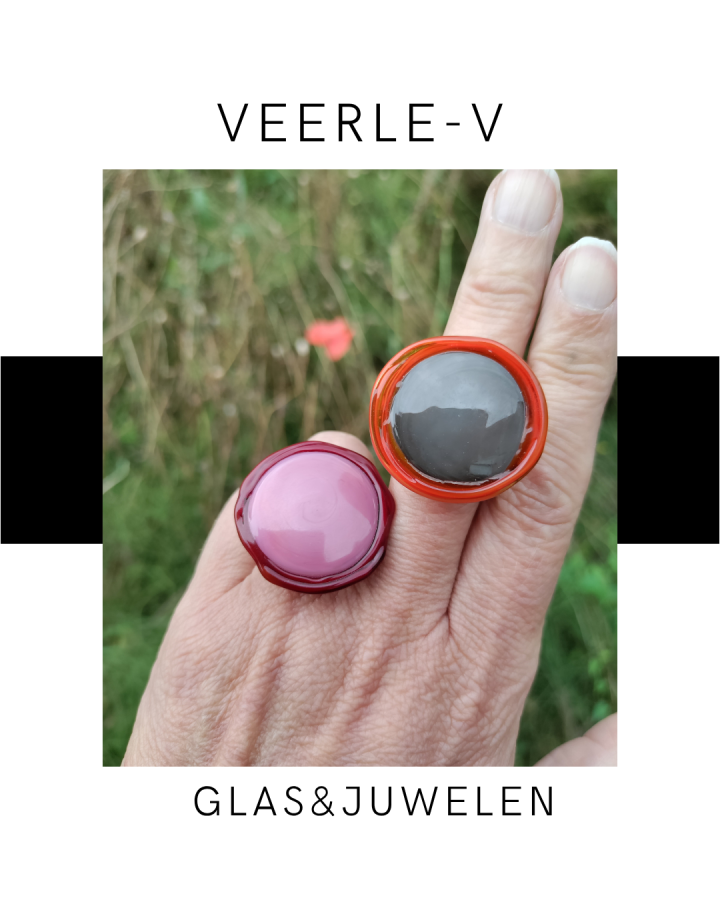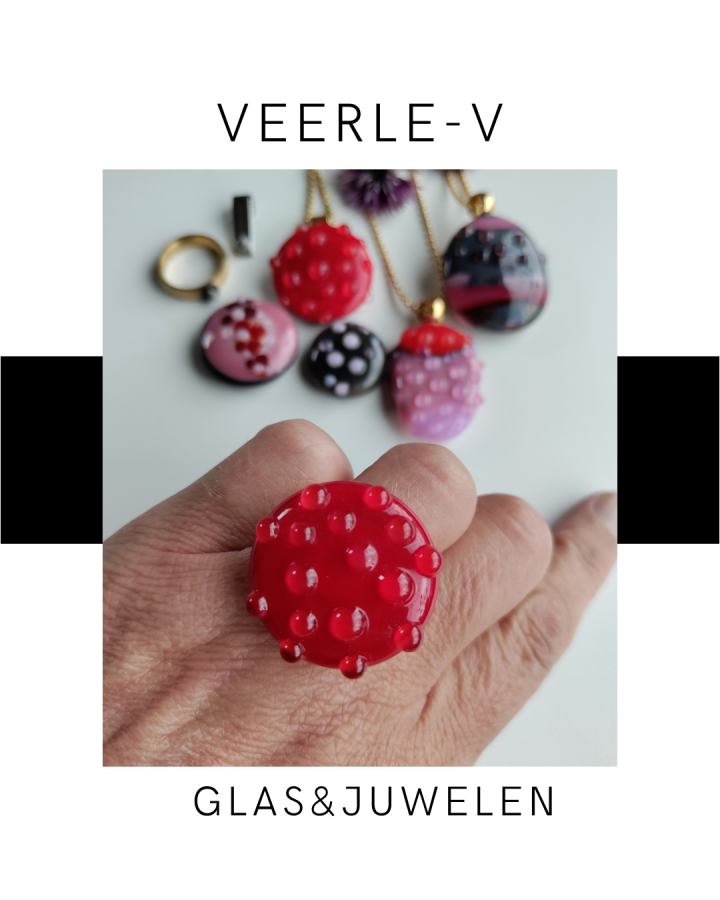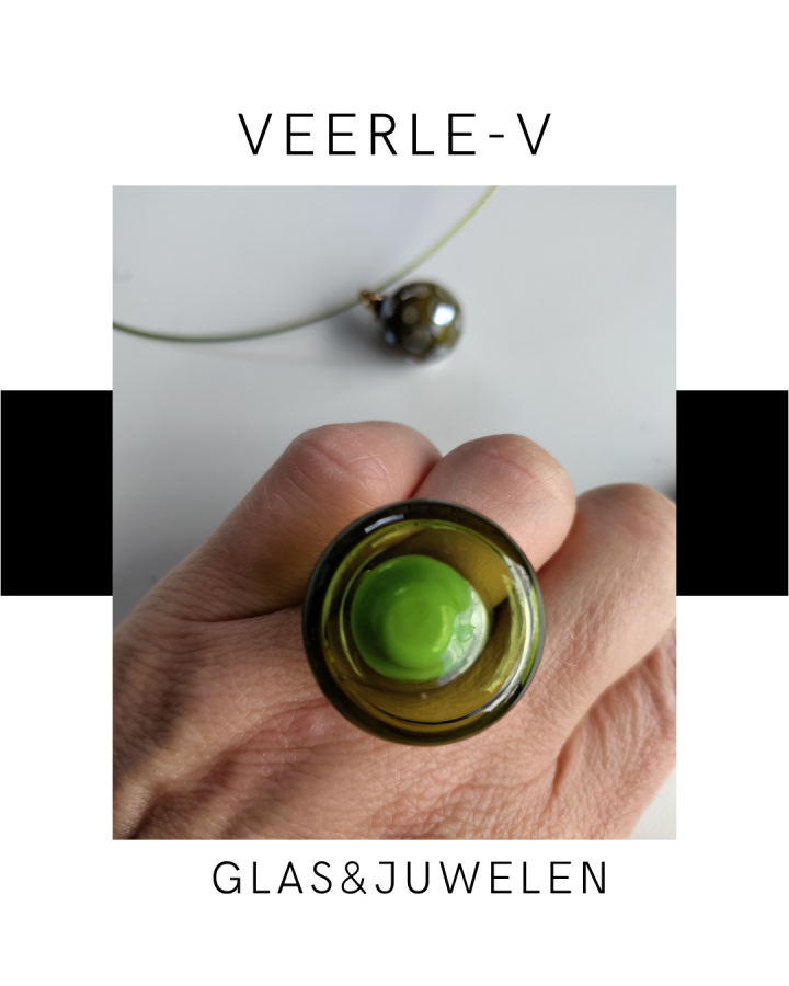 De Veerle-V glas juwelen zijn zo ontworpen dat ze onderling gewisseld kunnen worden, vandaag draag jij de glazen tops op de ring , morgen aan de ketting.