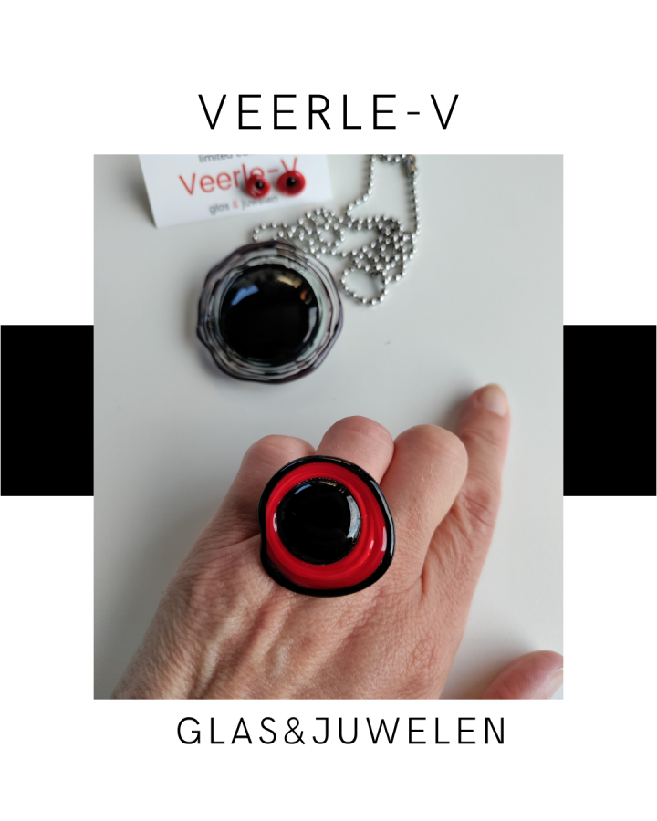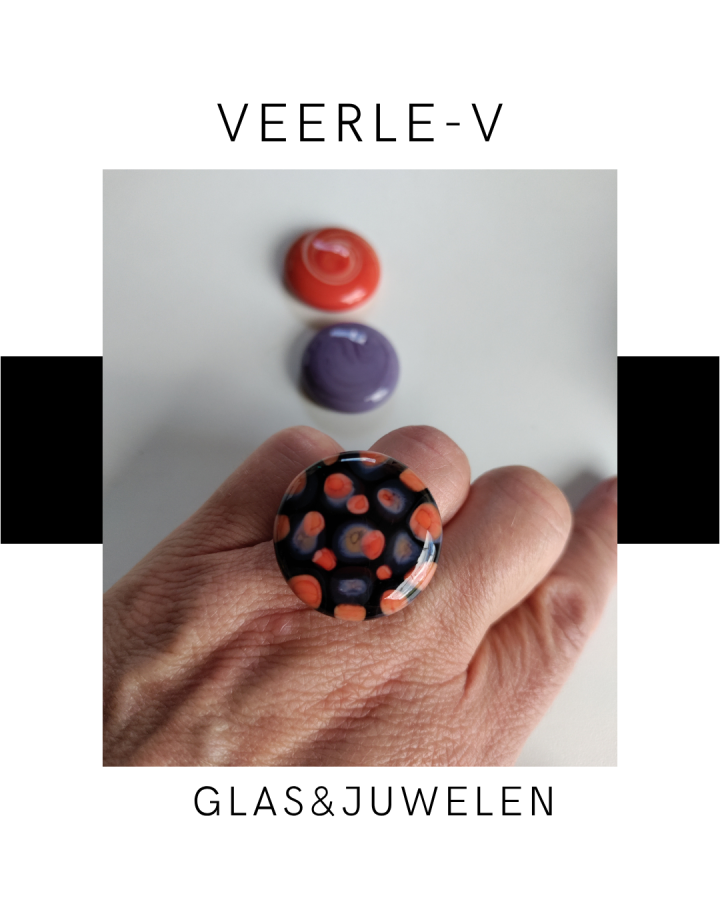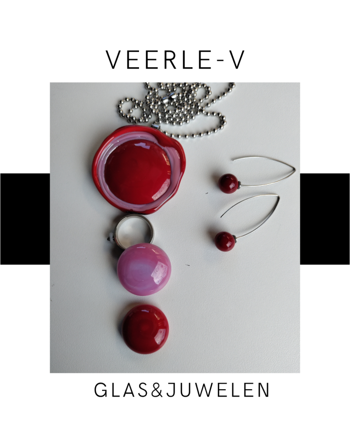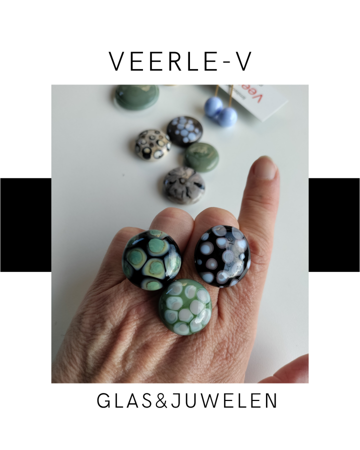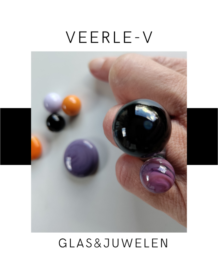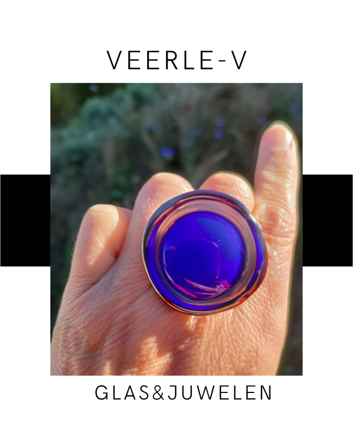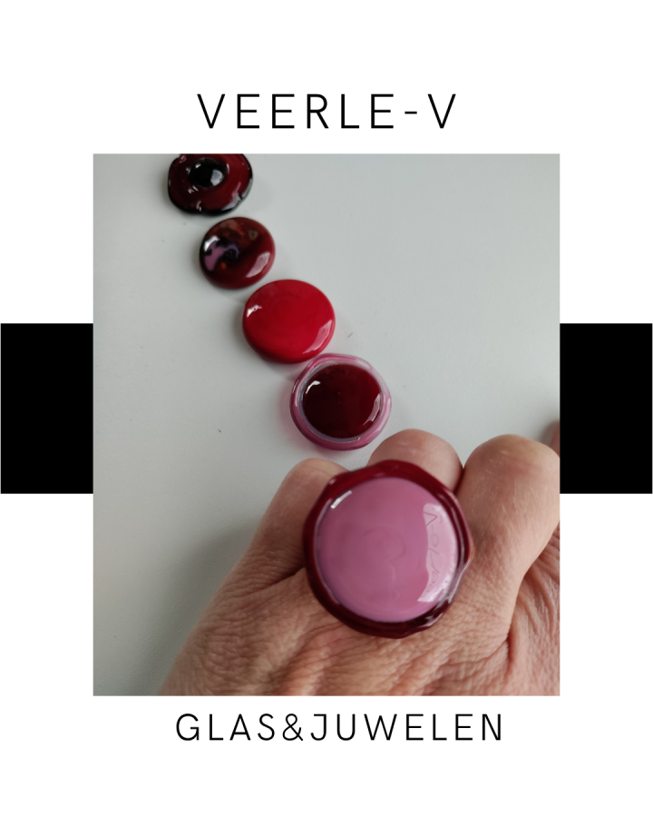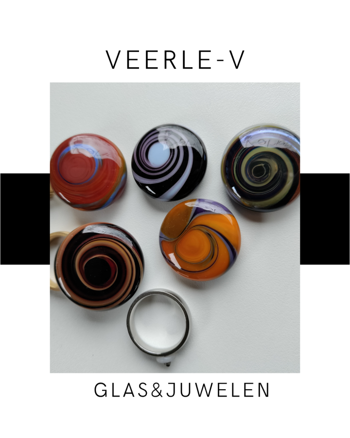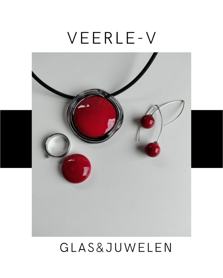 De Veerle-V glas juwelen zijn zo ontworpen dat ze onderling gewisseld kunnen worden, vandaag draag jij de glazen tops op de ring , morgen aan de ketting.