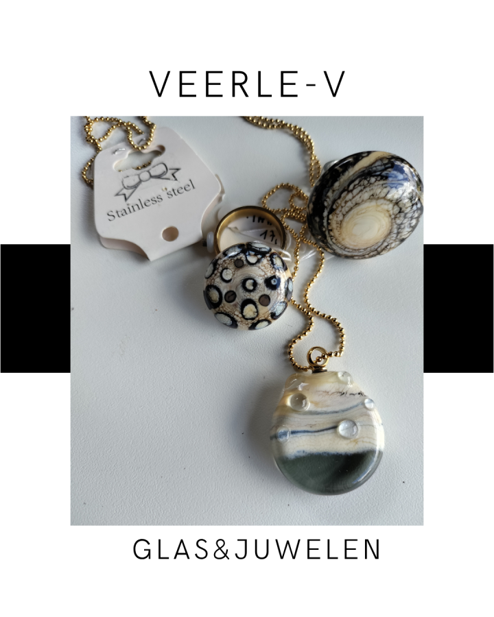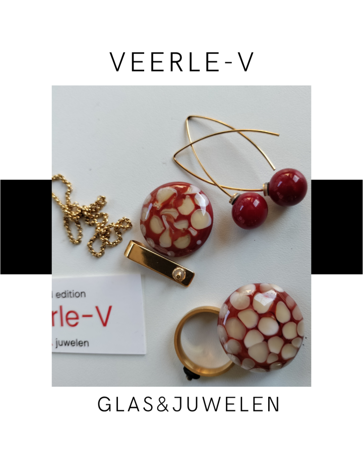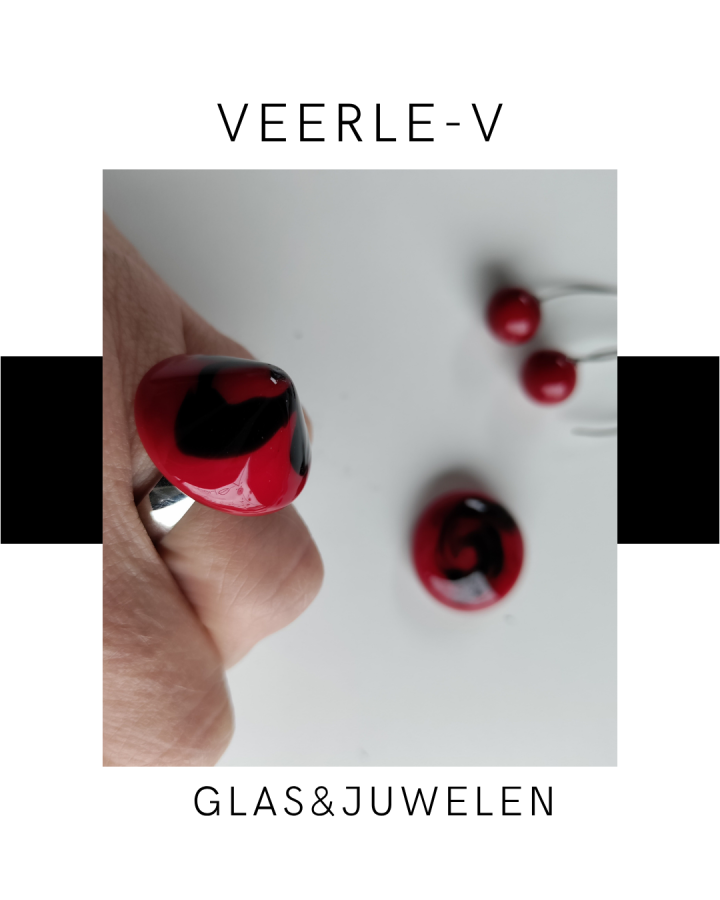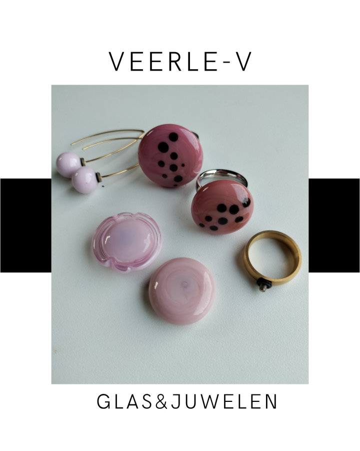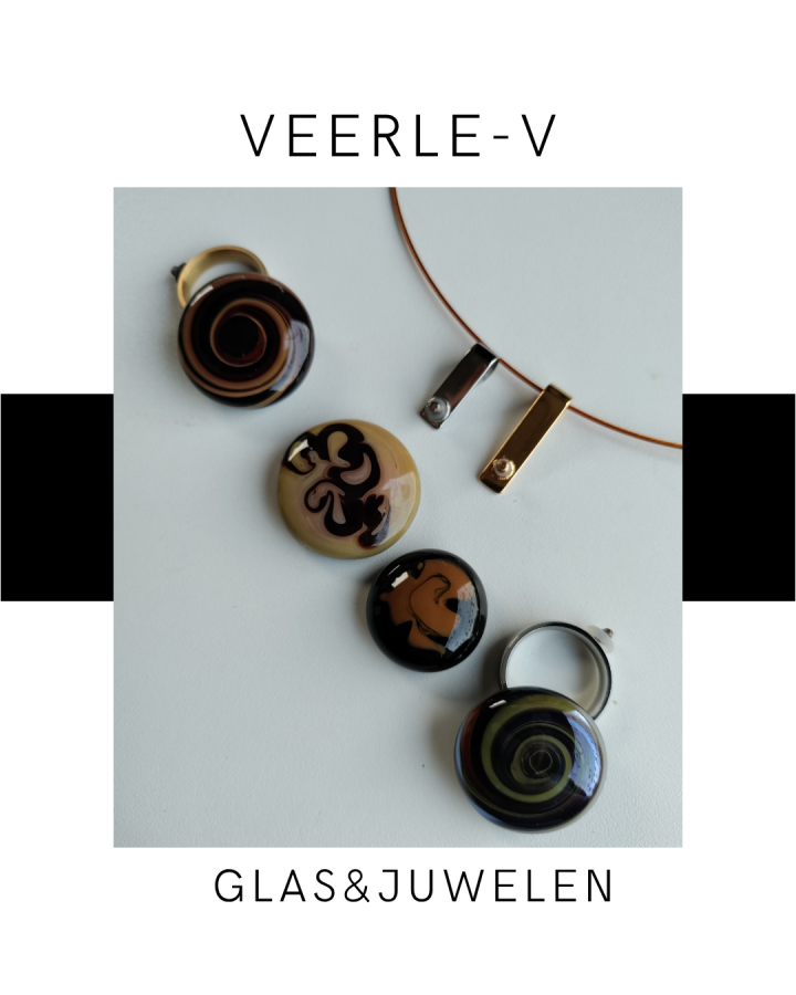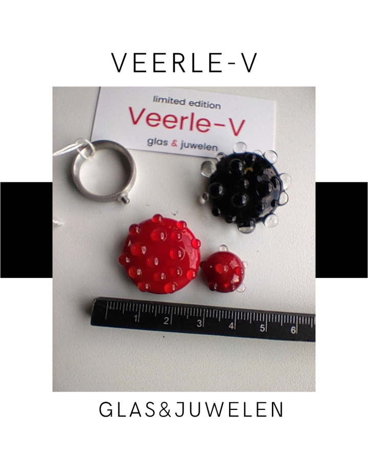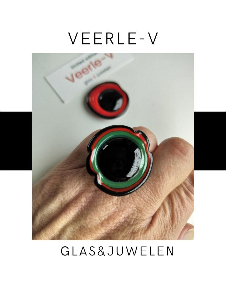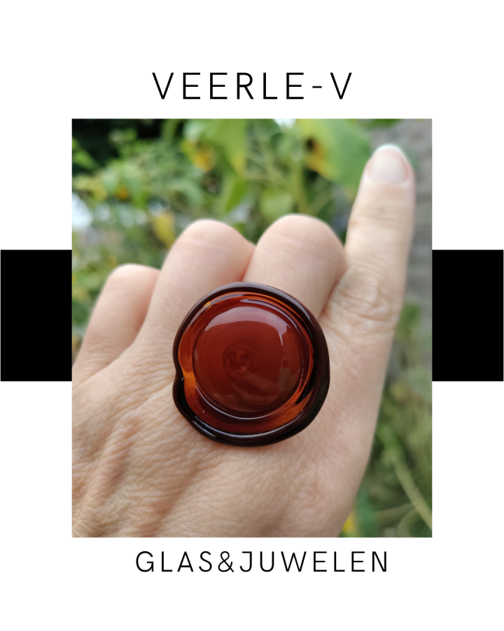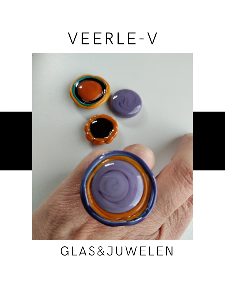 De Veerle-V glas juwelen zijn zo ontworpen dat ze onderling gewisseld kunnen worden, vandaag draag jij de glazen tops op de ring , morgen aan de ketting.