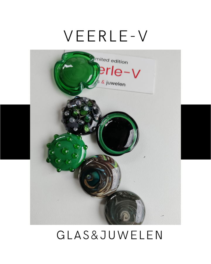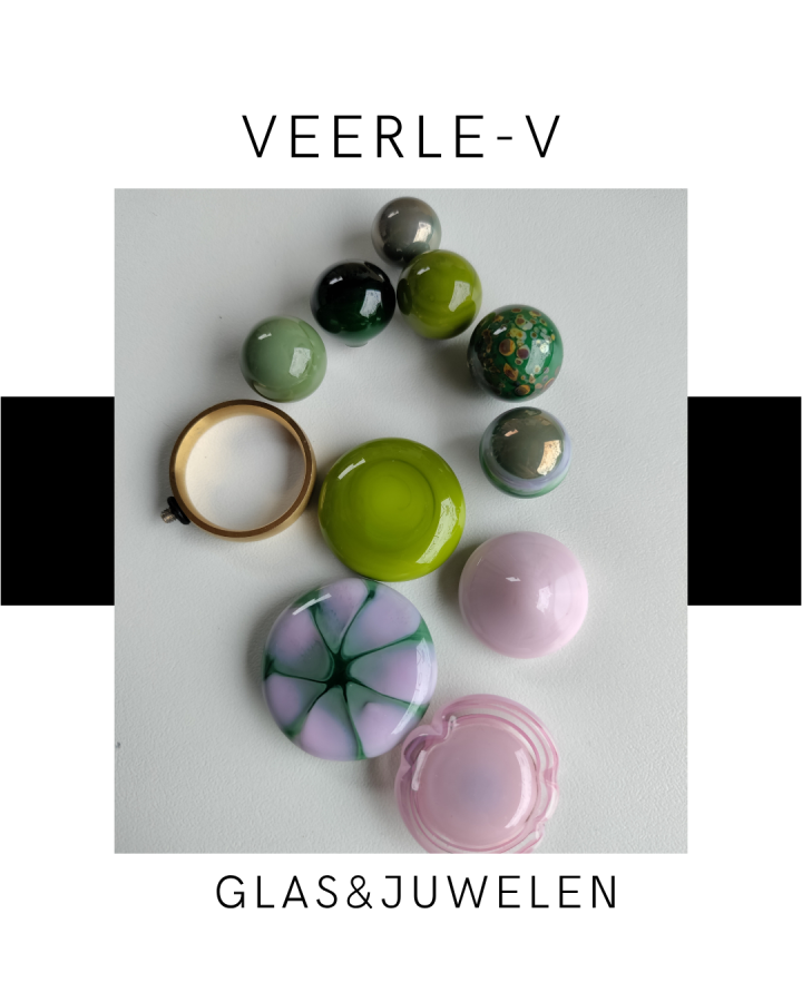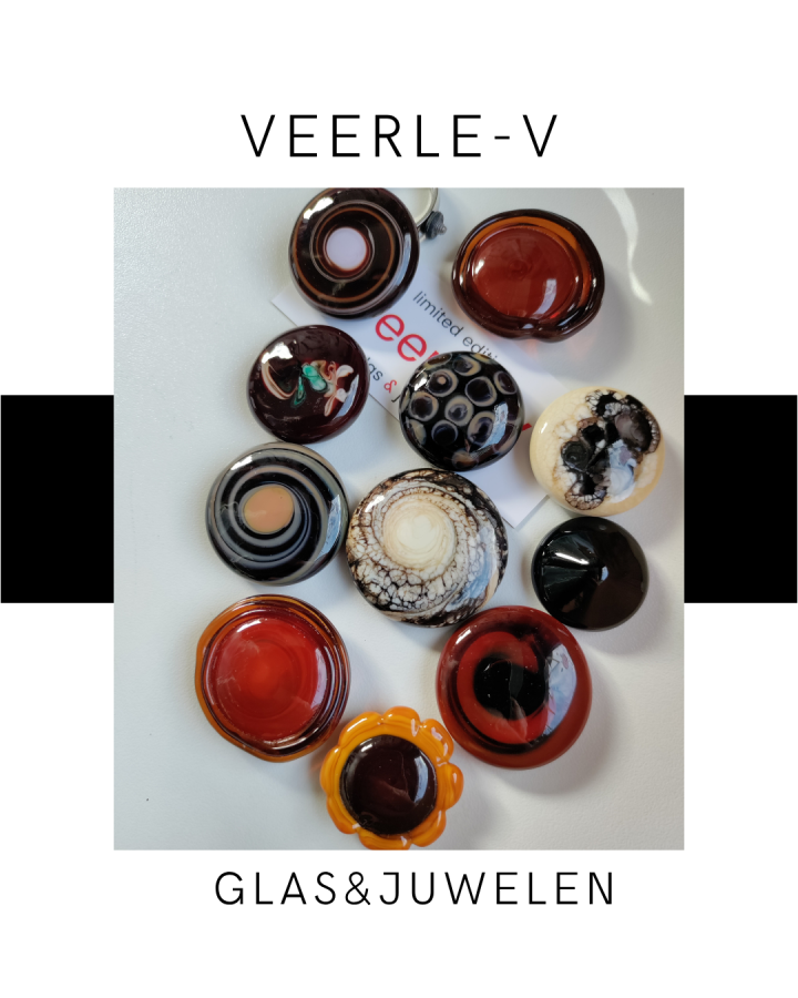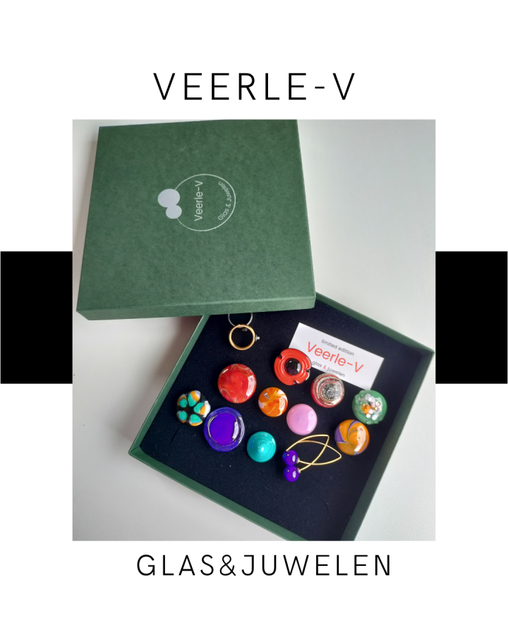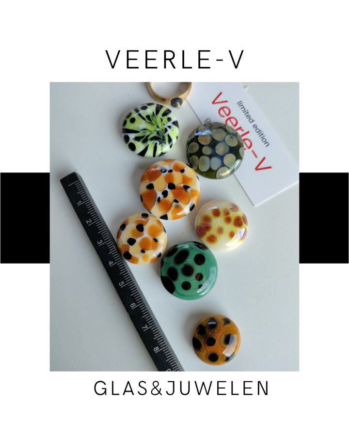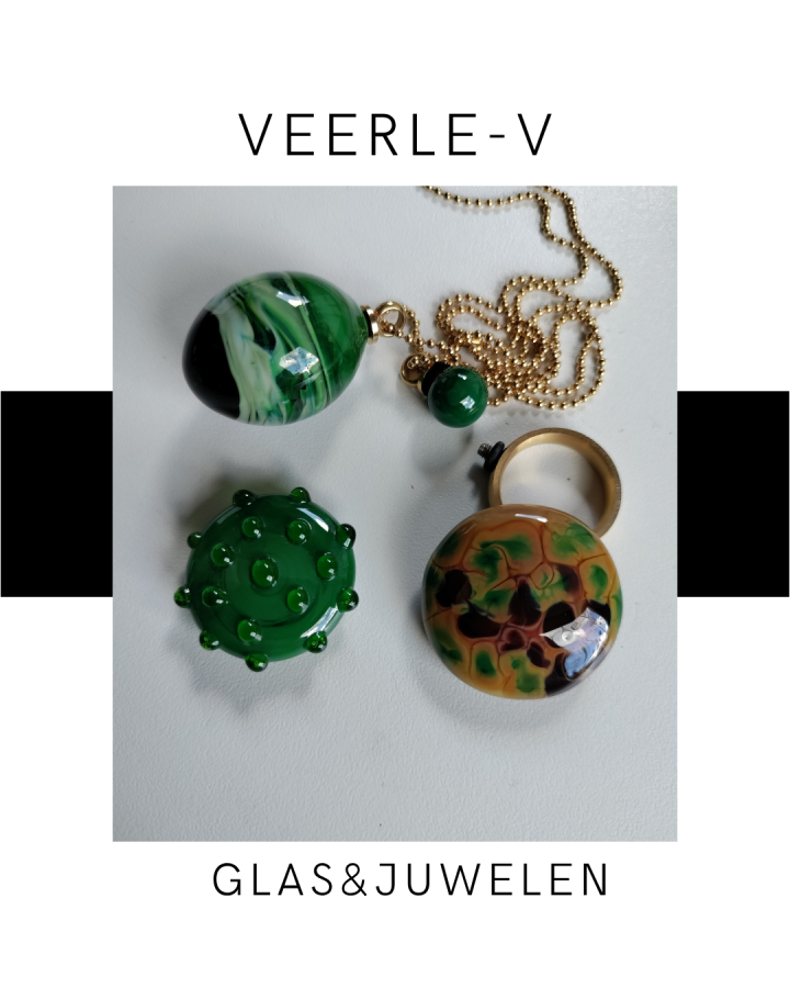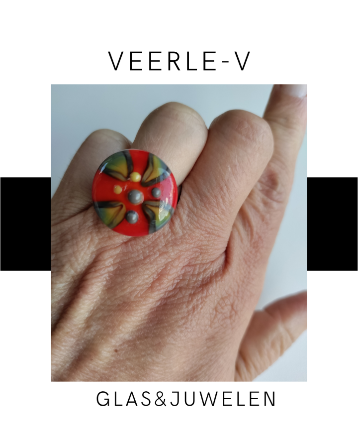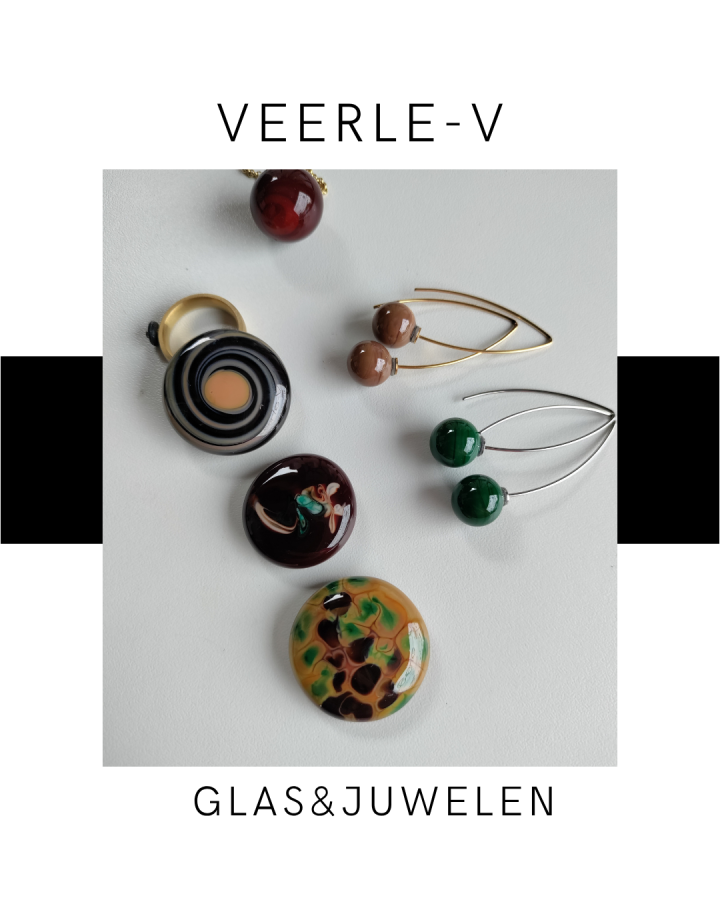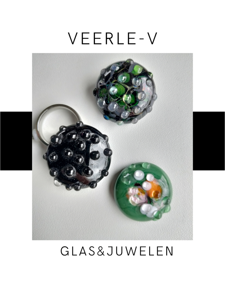 De Veerle-V glas juwelen zijn zo ontworpen dat ze onderling gewisseld kunnen worden, vandaag draag jij de glazen tops op de ring , morgen aan de ketting.